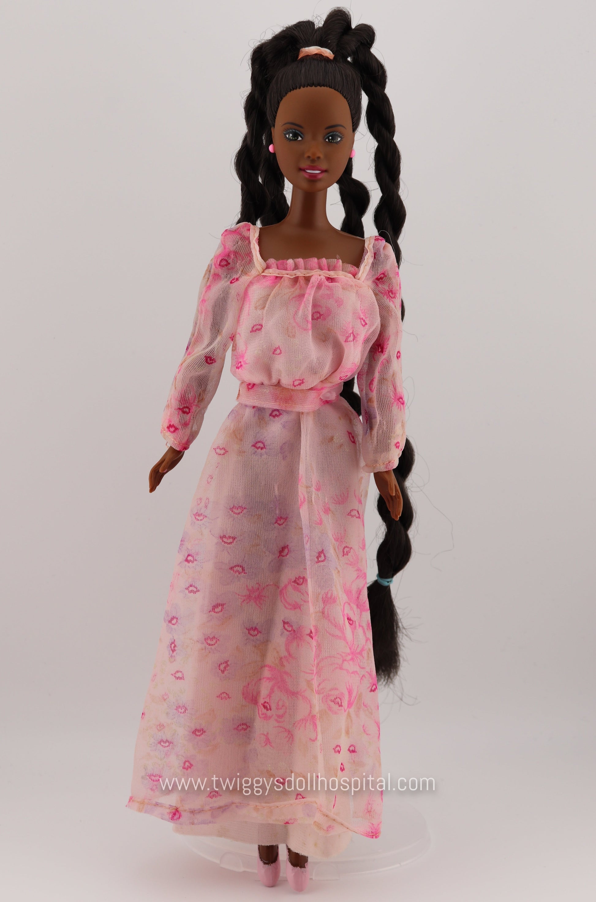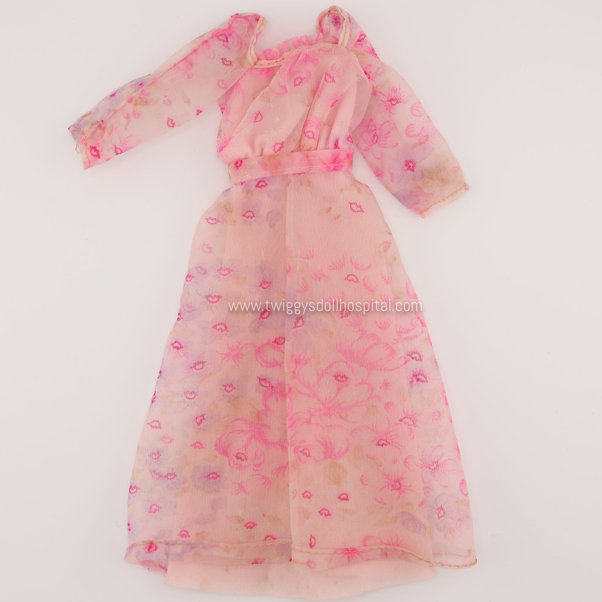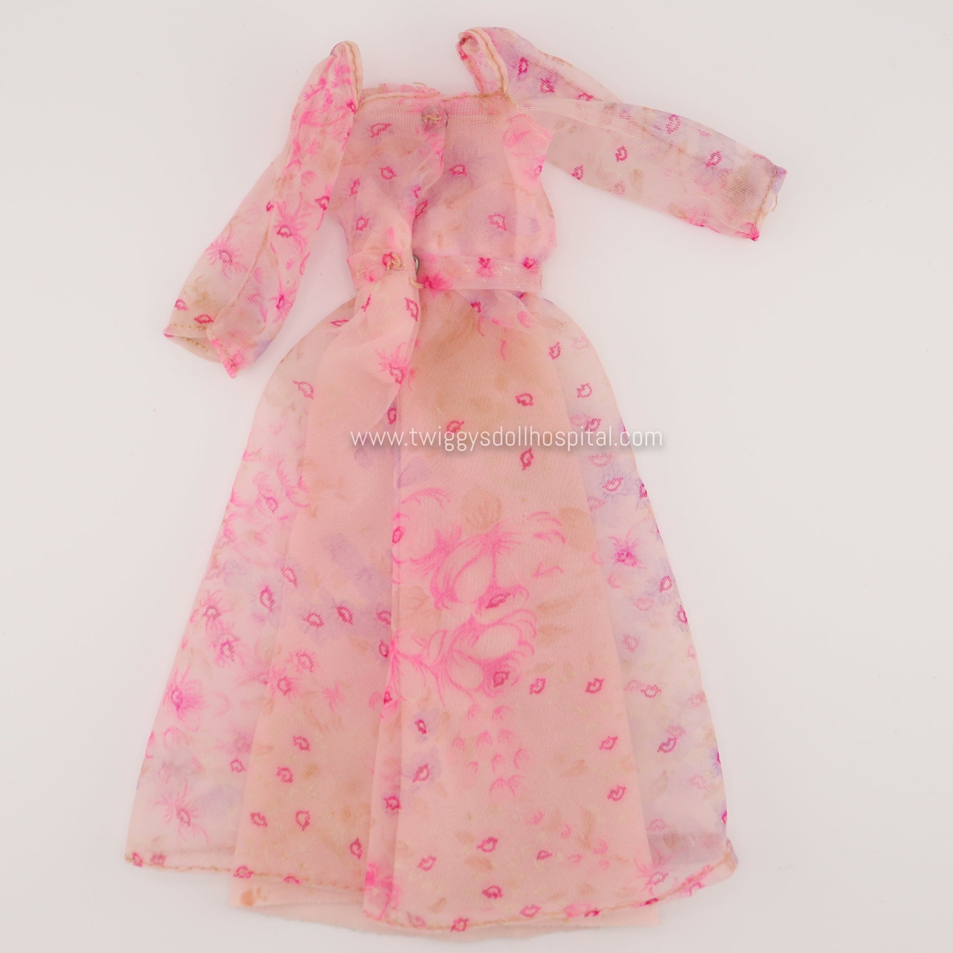 This adorable dress is from Kissing Barbie herself from 1978. The light chiffon in this soft pink is so elegant, it seems to flatter every doll I've ever seen it on. Romantic and light. Outfit is genuine Barbie fashions. Best fitted for the Twist and Turn body type, as pictured. This listing is for the outfit only. Doll sold separately.
