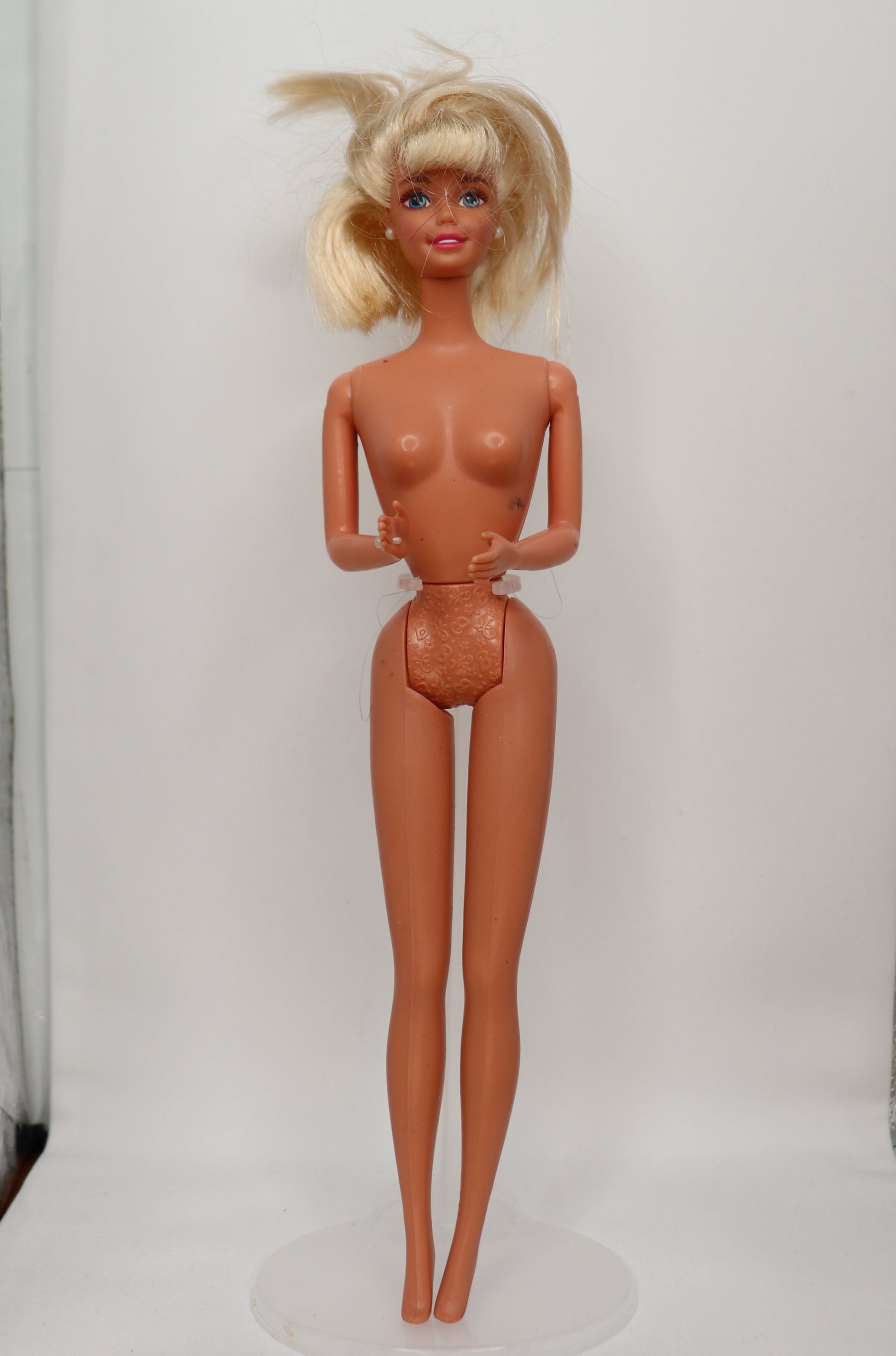 This is a 1990s Barbie that used to have the longest hair, but she's been on the run for a month now. She had to cut her hair off, dye it blonde, and try to keep a low profile. Word is that she's wanted in country's all across the world. Can you help keep her safe? Restyled wearing authentic 1990s/early 2000s Barbie Fashion x Bongo.