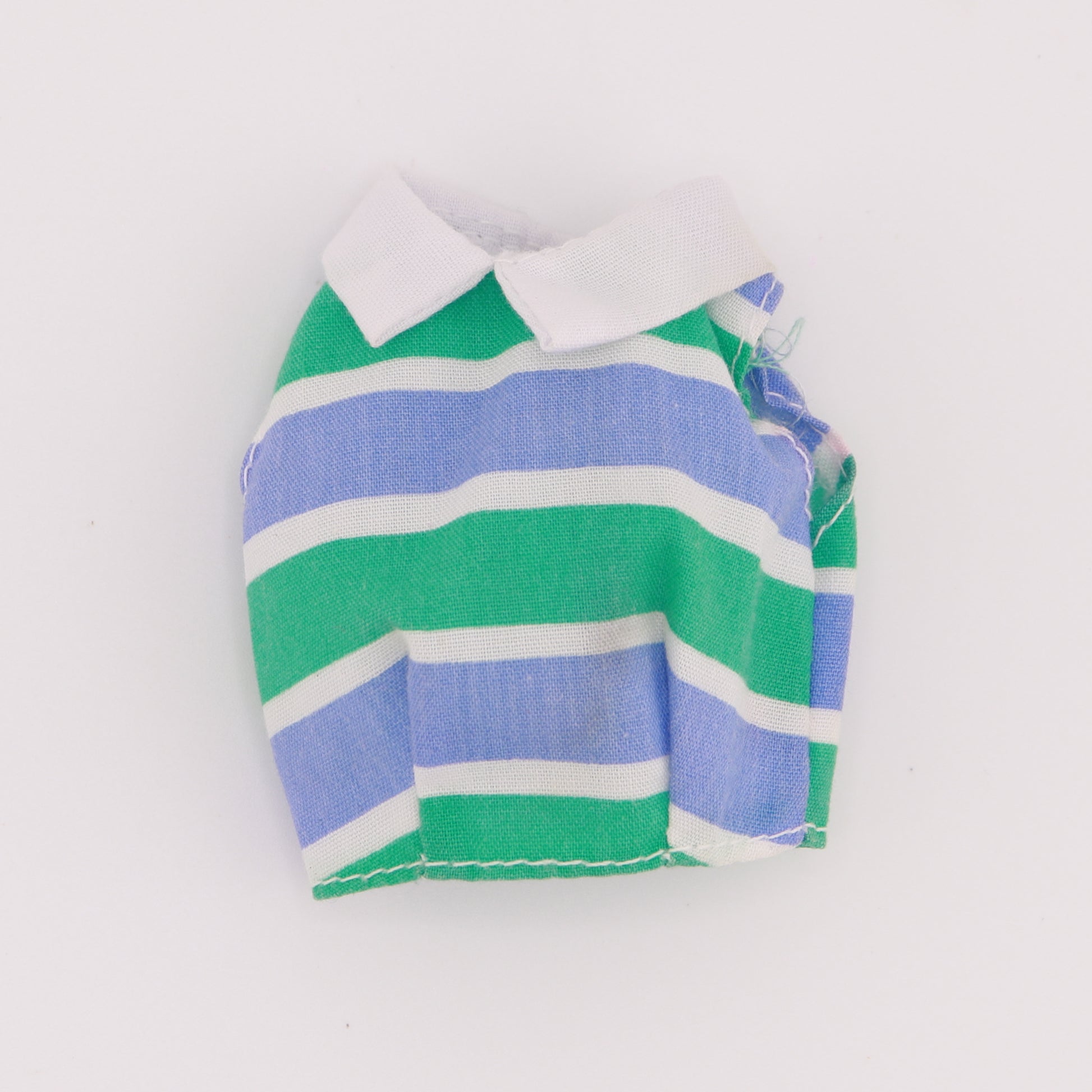 This is an authentic purple label blue and green striped crop top that is perfect for a day at the country club or half game of golf. Best fit for Twist N Turn body.