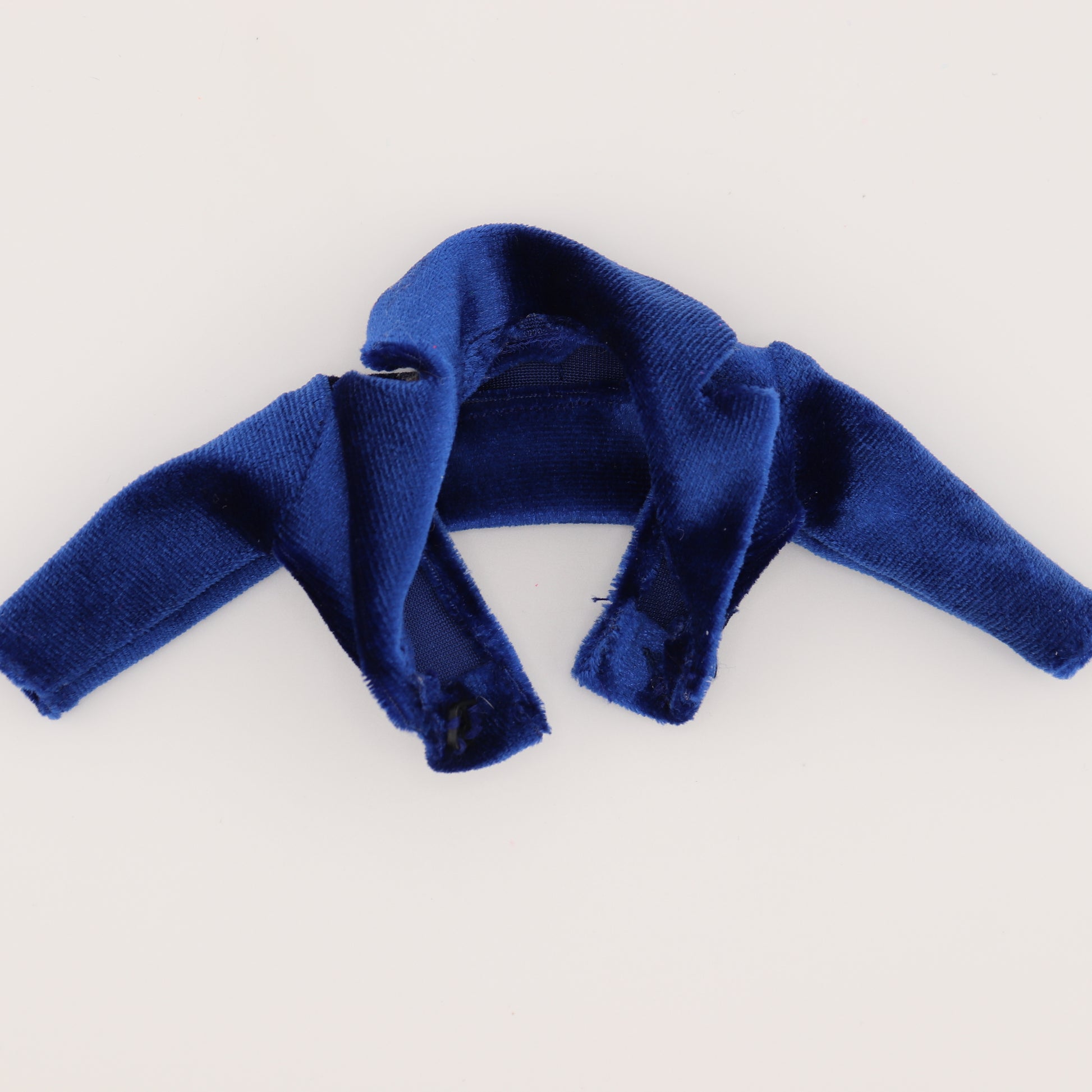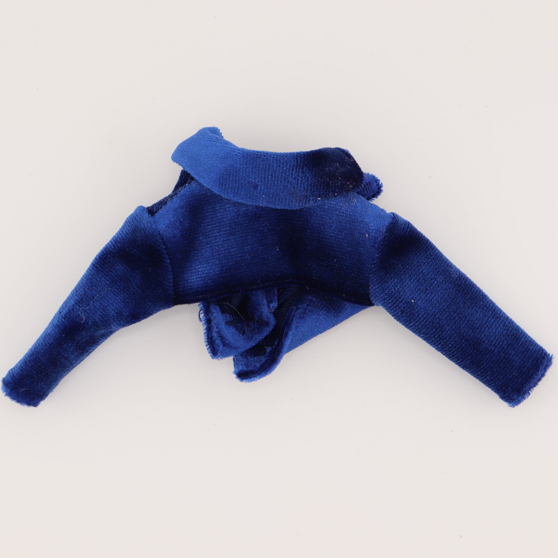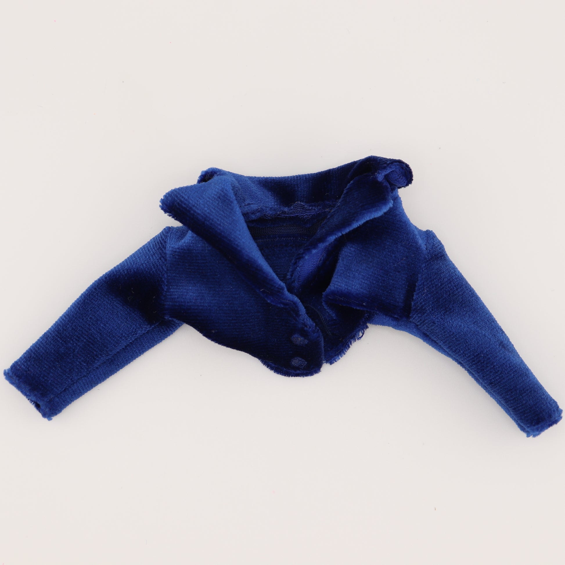 This is a cropped jacket made out of velvet like material. Originally sold on the Very Velvet Blue Barbie sold in 1998. Best fit for Twist N Turn Barbie body types.