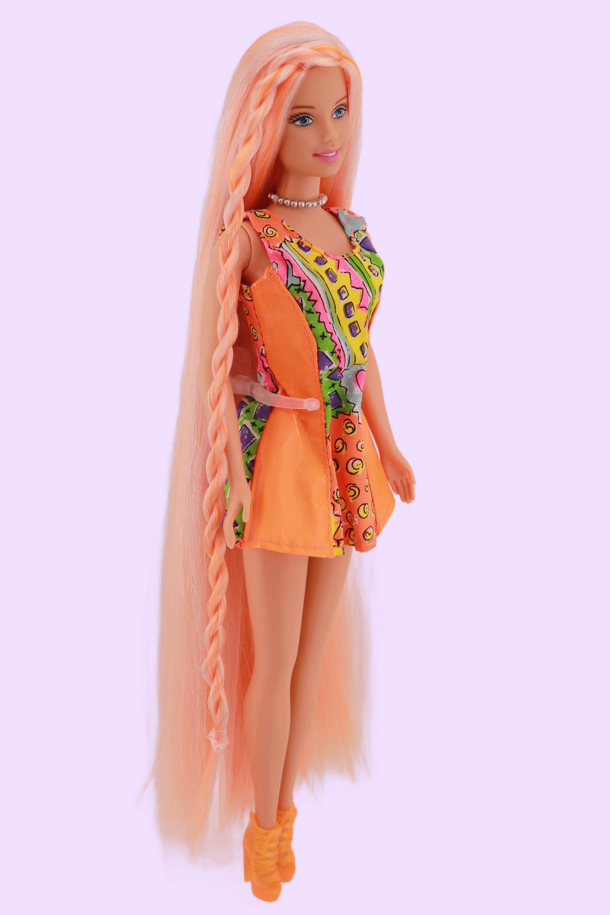 This was another commission doll and she turned out so incredible cute, I am having a hard time telling her goodbye. Extra long peach hair all over with streaks of tangerine and silver! I really love how the silver makes her hair sparkle and it's insanely soft.