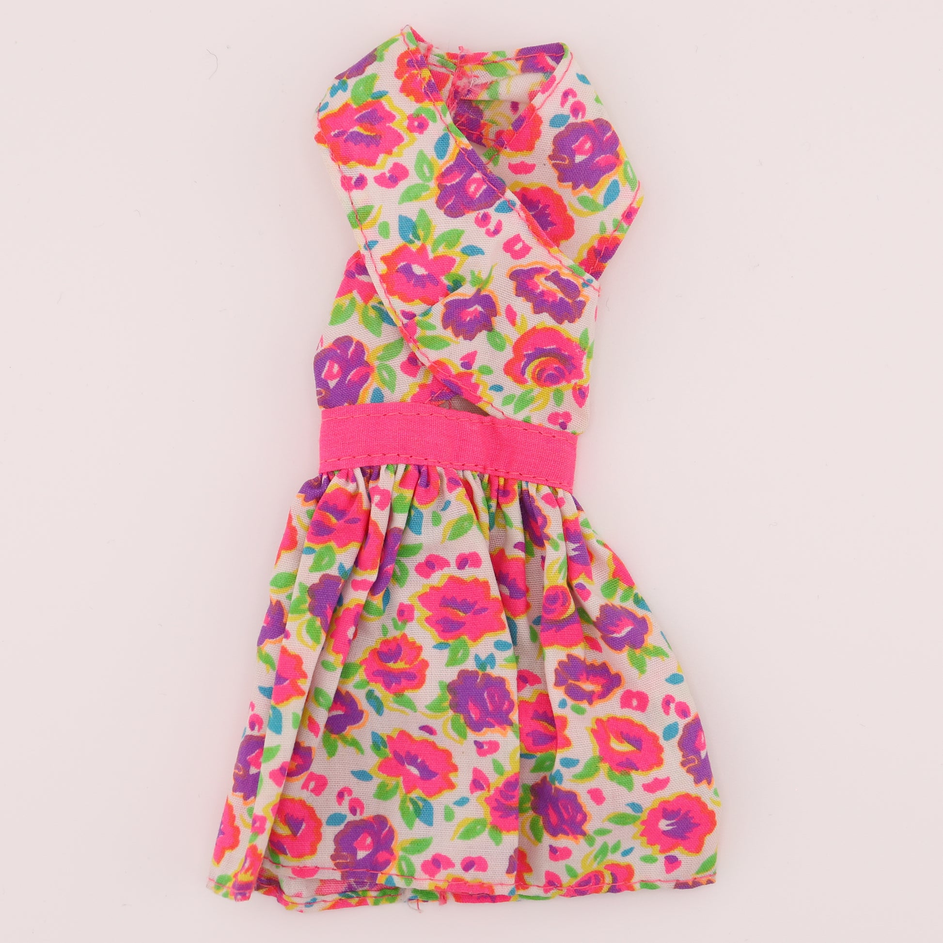 This brightly colored, floral dress is so much fun. It has a criss cross halter top that really shows off 90s Barbie's figure! Originally sold in a Great Weekend fashion pack in 1992.