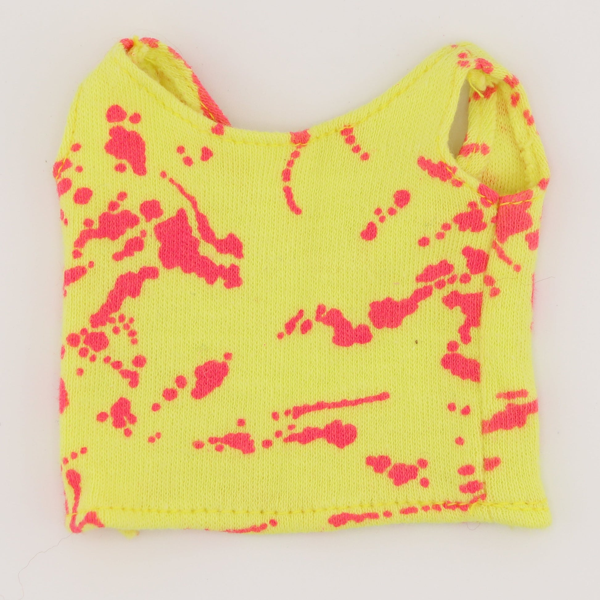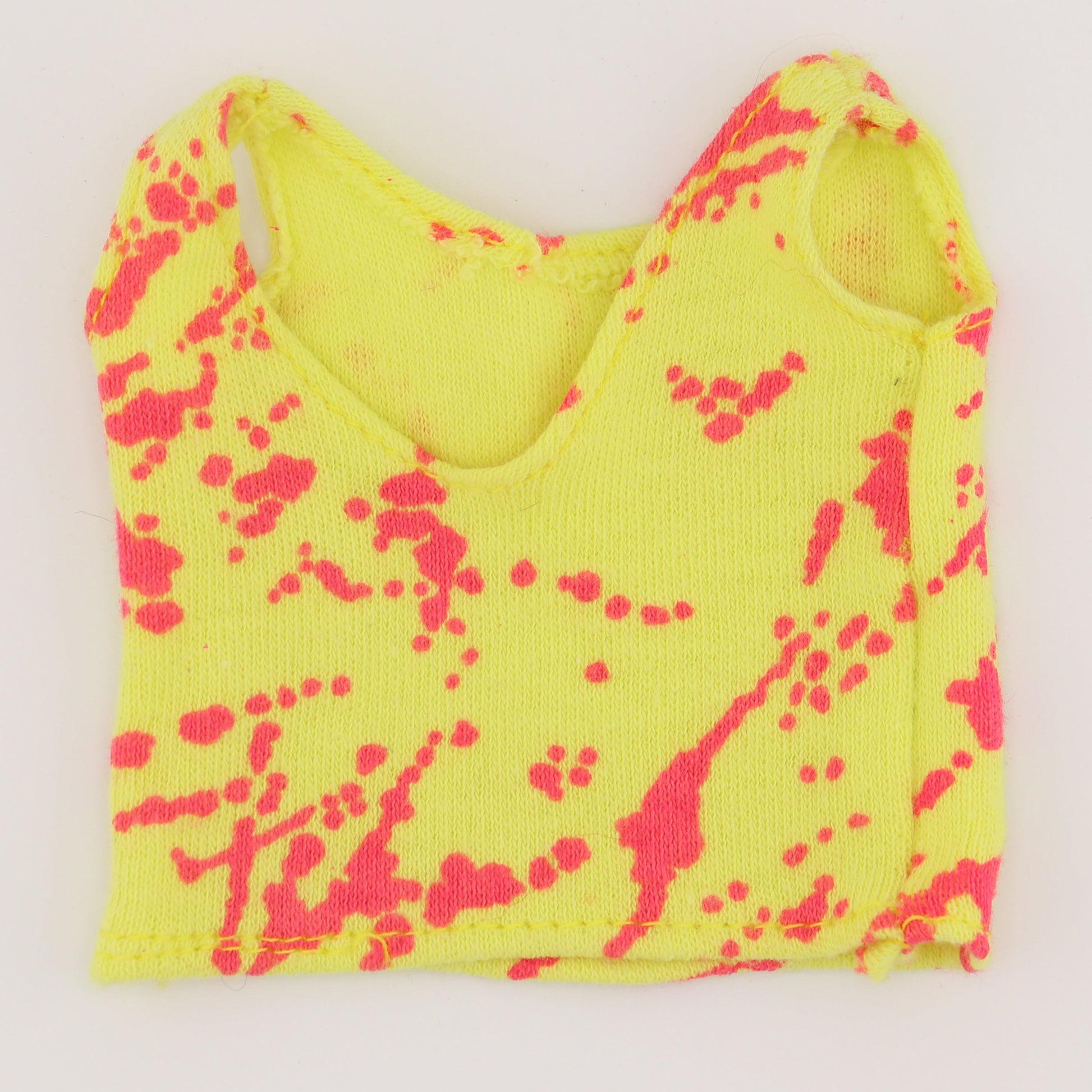 Ken's let Barbie borrow his work out shirt again. This time it's neon yellow and splattered pink paint.
