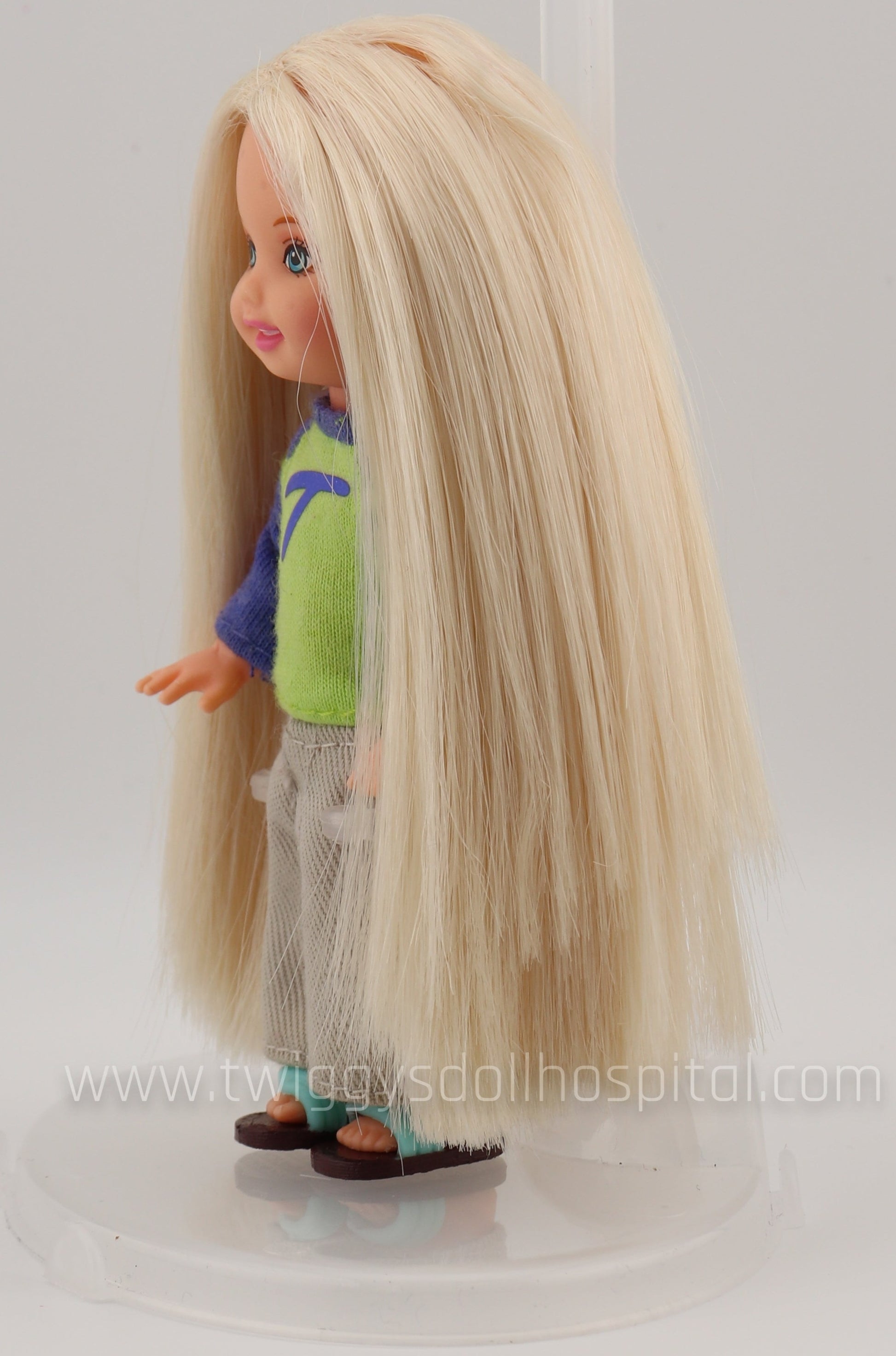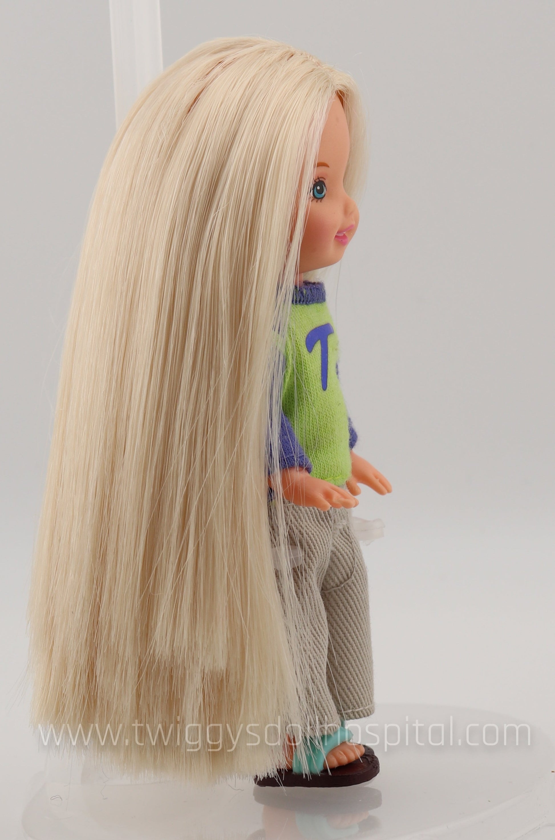 This Kelly is wearing genuine Tommy Doll fashions from a Kelly and Tommy fashion pack. Her hair is the softest of all the Kelly dolls and so thick! Enjoy getting lost in thought as you fidget with her soft hair giving you a relaxing sensory experience. I had a hard time letting go of this beautiful doll.