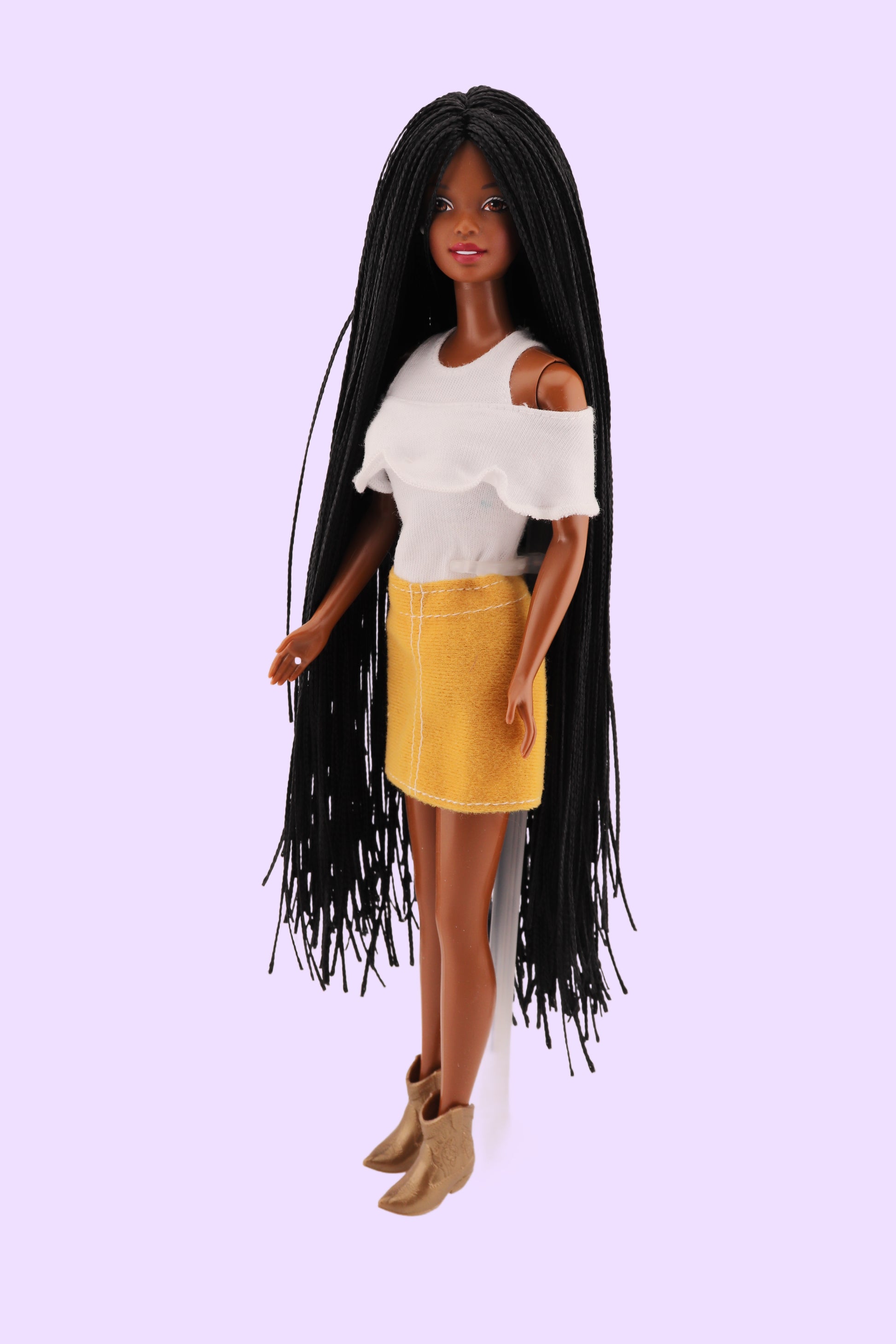 This was originally a brand new 2001 Holiday Excitement Barbie. She was in a desperate need of a new hair style, so I rerooted her with classic micro braids that are impossible to mess up. She never has a bad hair day. I love these dolls for taking out into the world as their hair will never tangle.