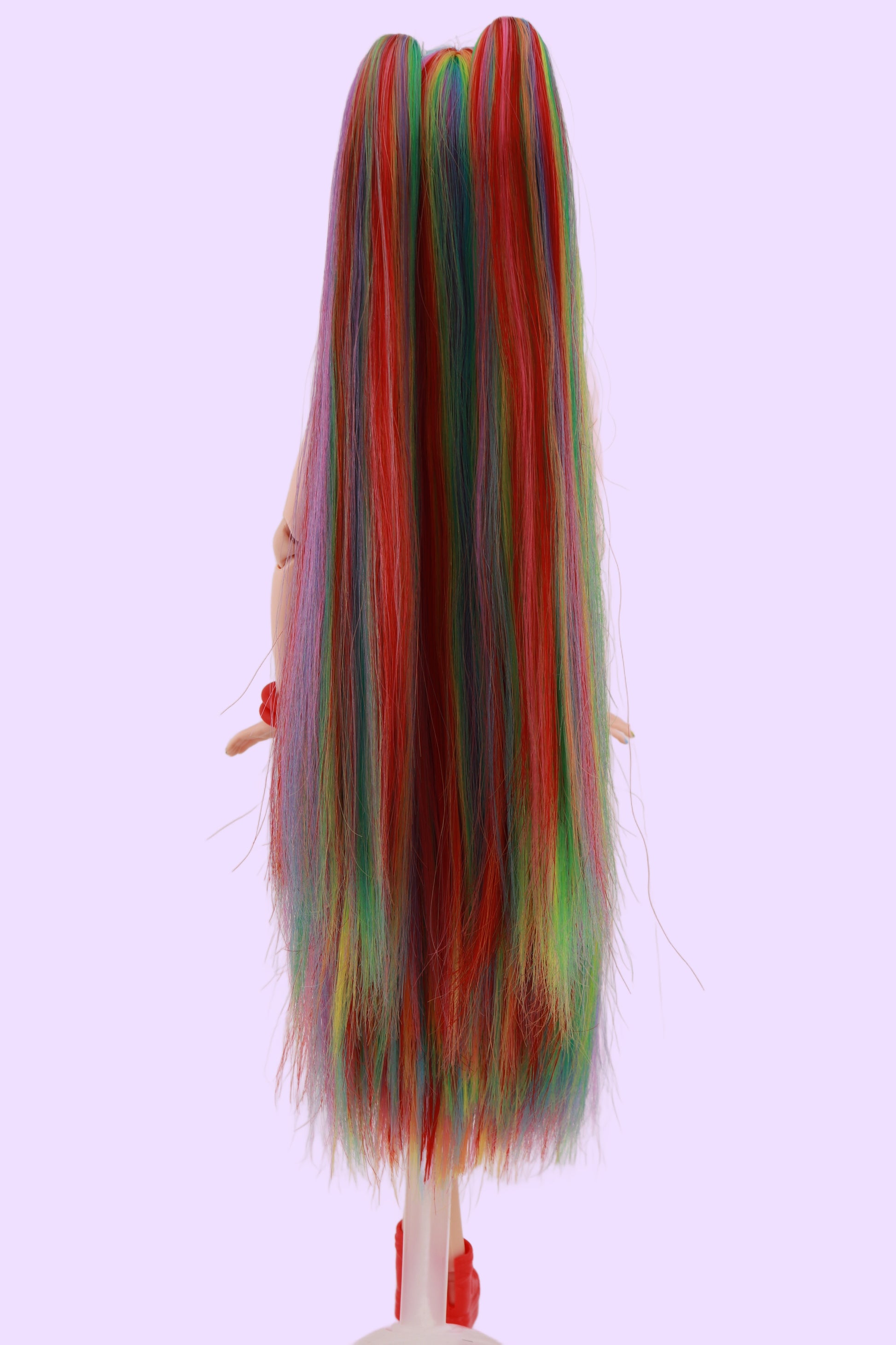 This is a one of a kind daydream I had. I gave a mermaid Odile a brand new body, rainbow hair, rainbow nails, rainbow freckles, and a rainbow outfit. All custom paint is acrylic and sealed with mr. super clear. 100% Nylon hair is the softest you've felt on a Barbie. Looking at this Barbie makes me so happy. I hope whoever gets her is happy every time they see her too,
