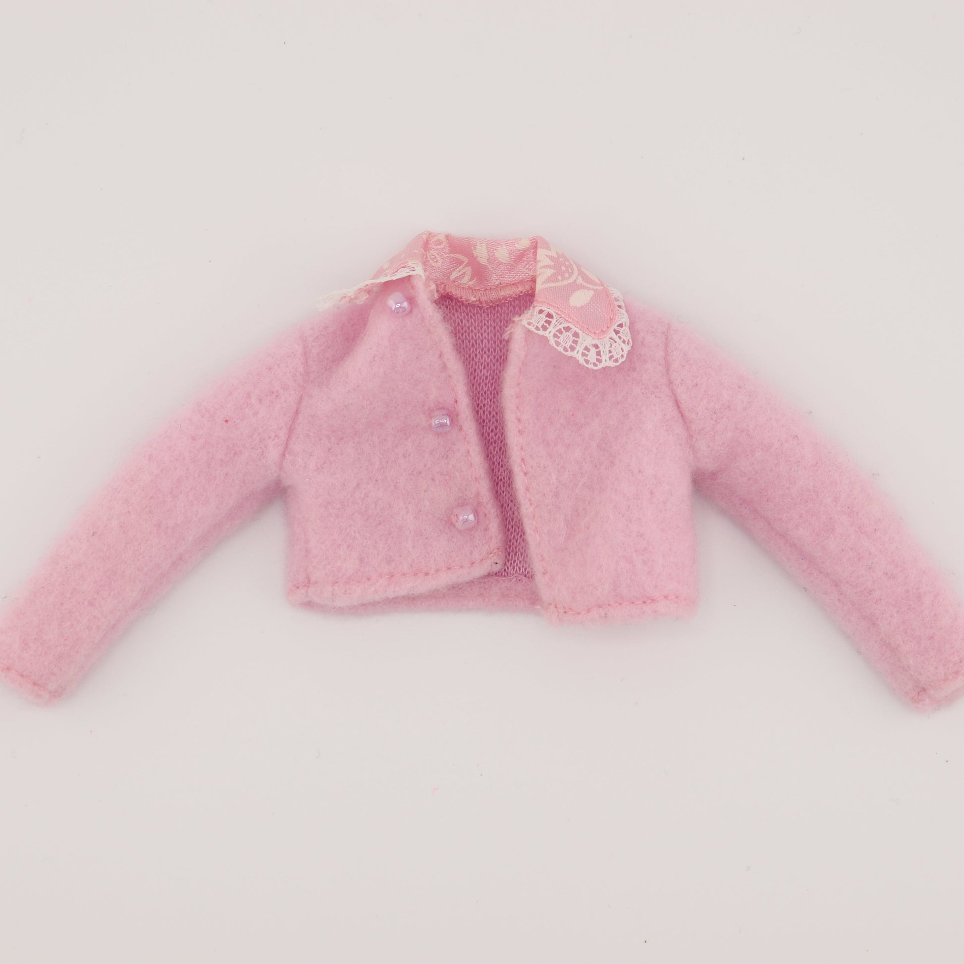 Baby pink cropped jacket to keep Barbie warm in the chilly months or at the movies. Best fit for Twist N Turn Barbie bodies.