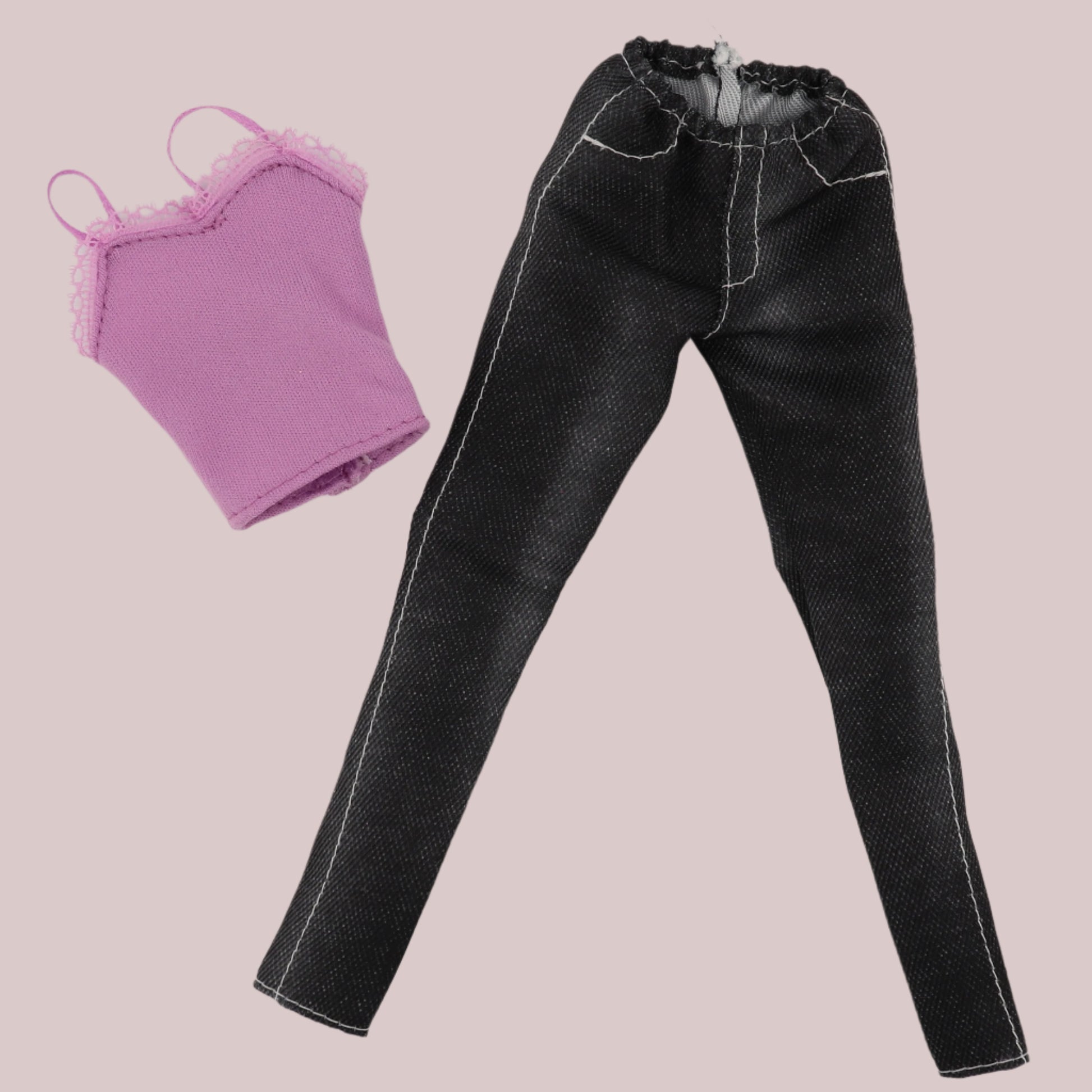 This outfit is adorable on any Barbie. Purple Cami and long skinny jeans make Barbie look like the model she is.
