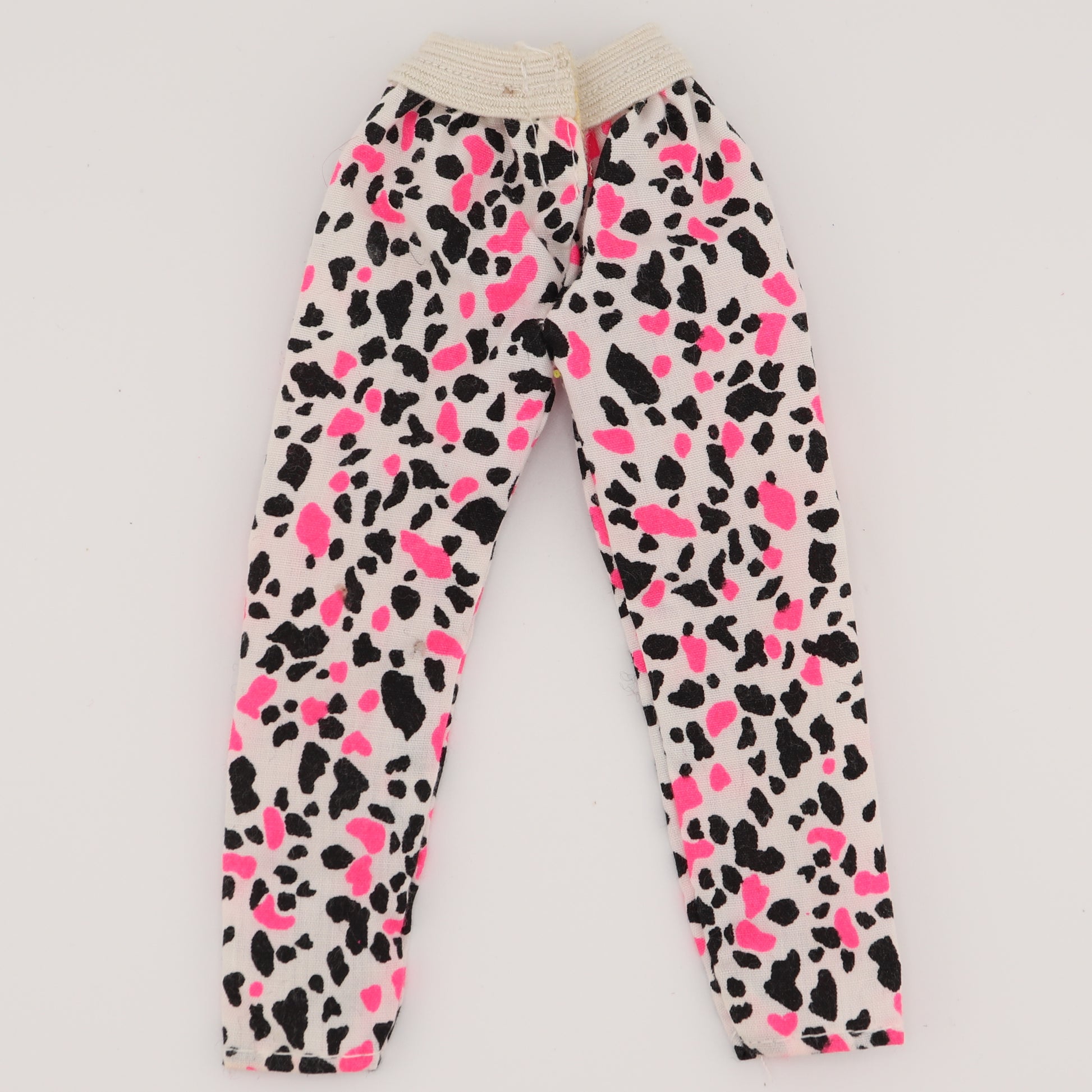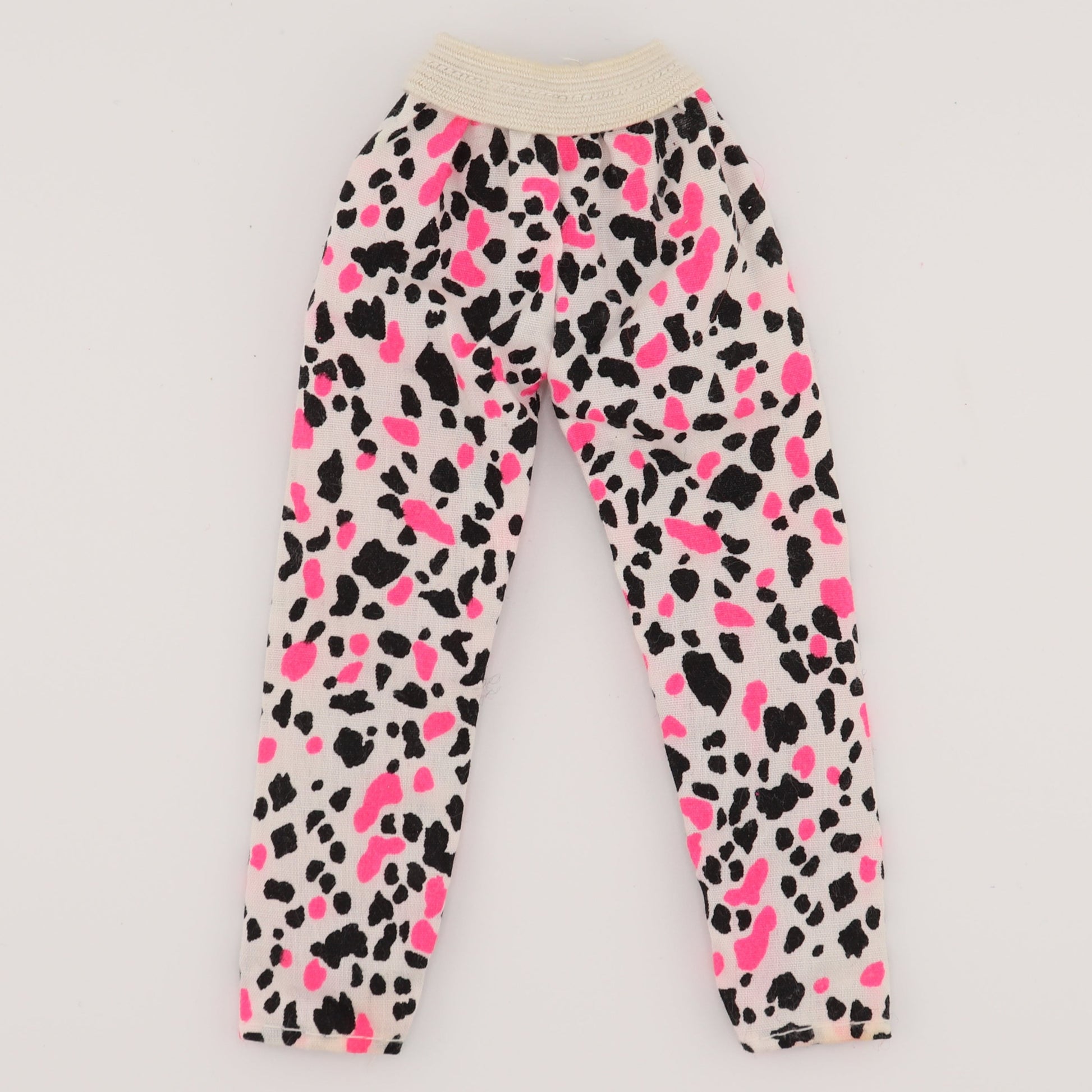 Originally sold in a fashion pack for Skipper in her Pet Pals line. Best fit for Skipper or her friends. Black and pink animal print pants.