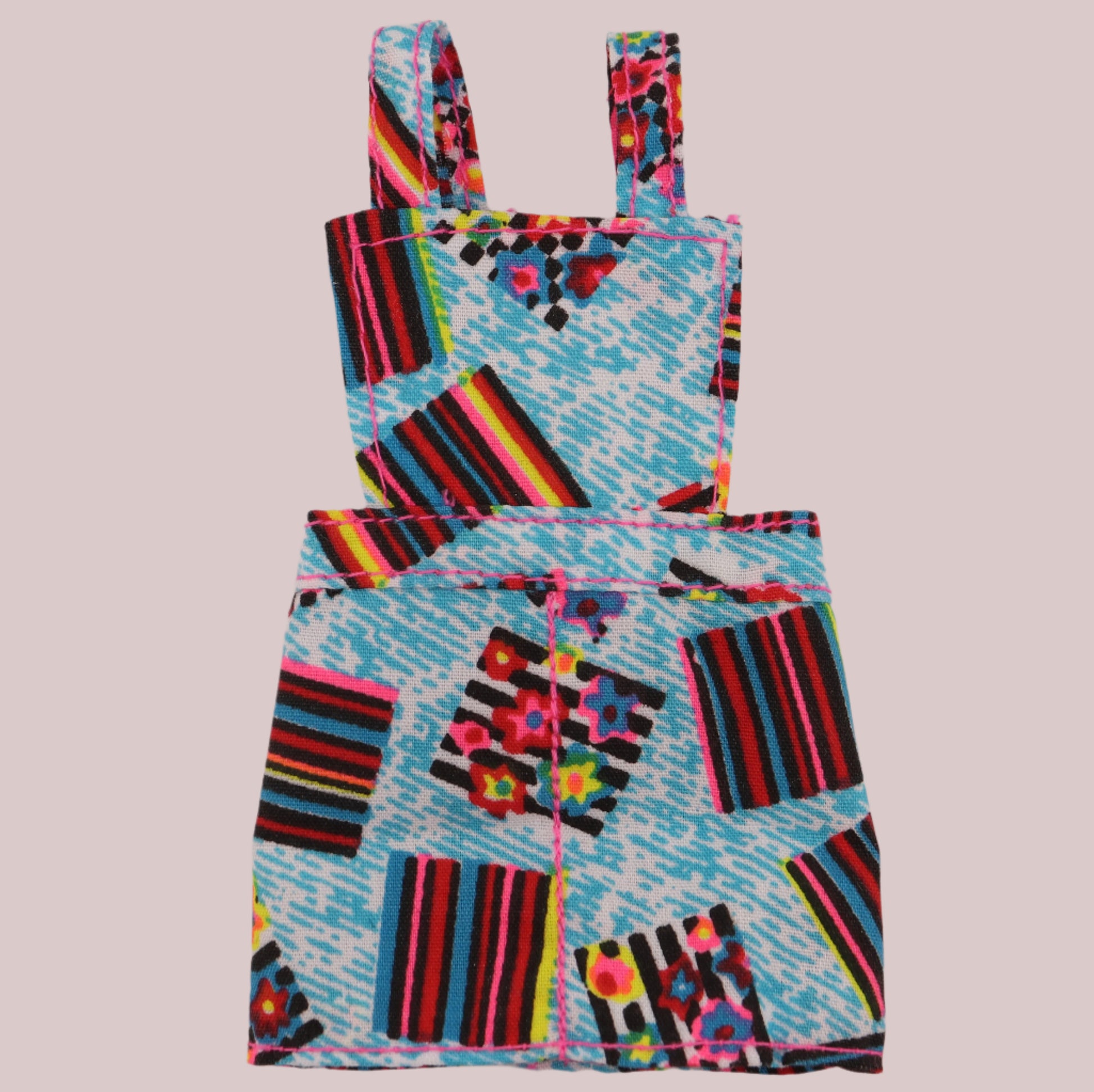 These fun printed overalls were originally sold in a fashion pack for Skipper called Teen Time Fashion in 1995. Can fit Barbie or Skipper.