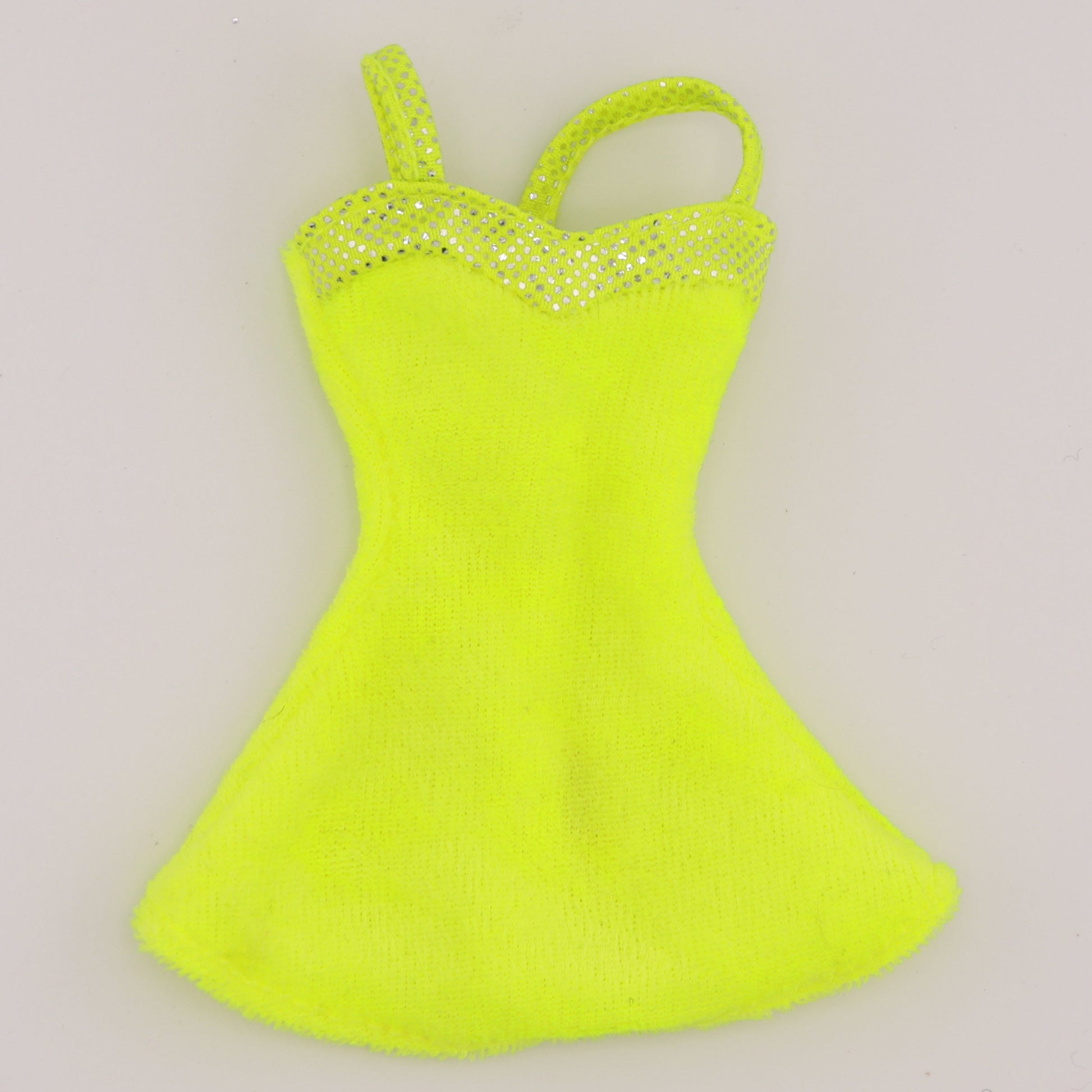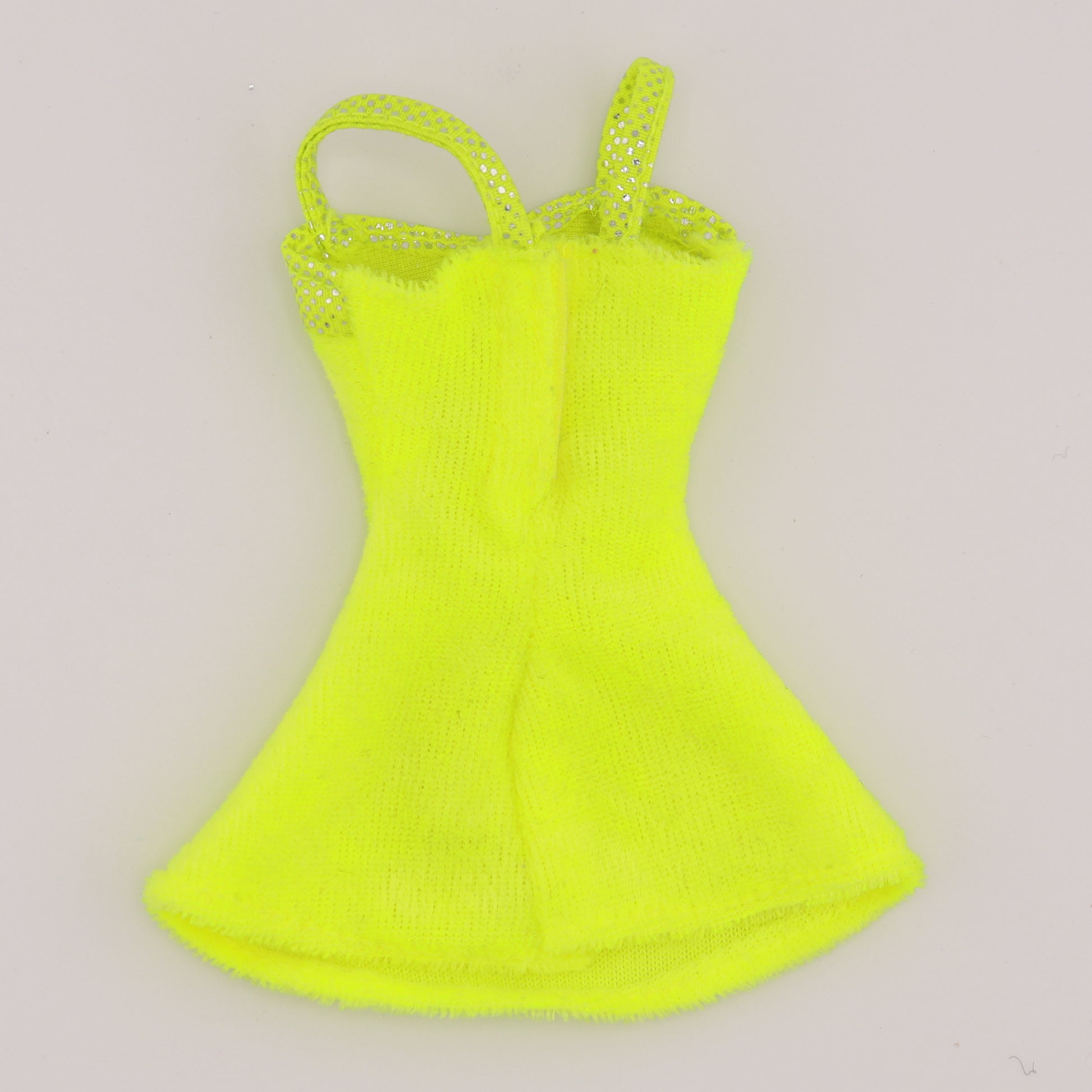 Neon Yellow, velvet dress with holographic trim. Originally sold with 1997 Sweetheart Barbie.