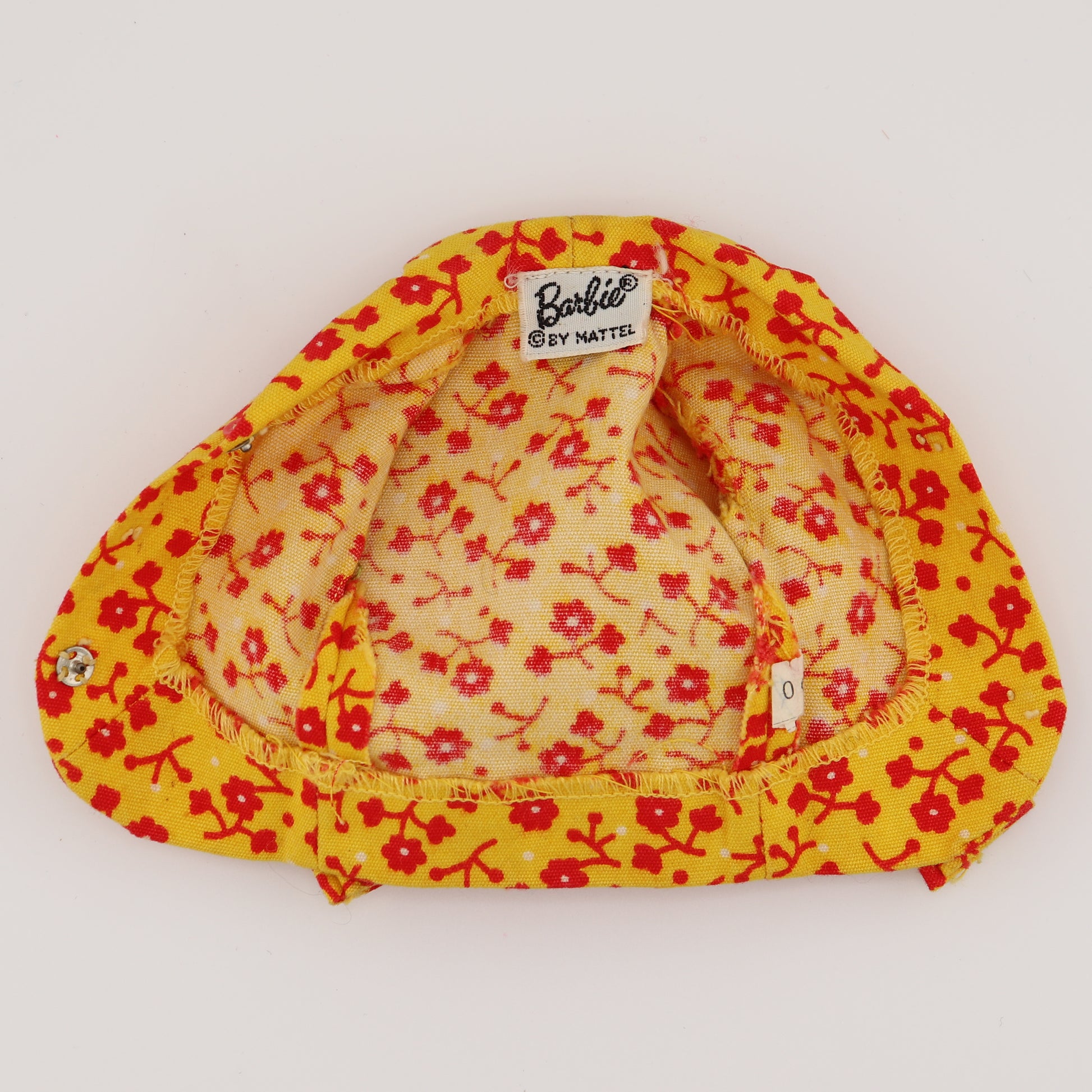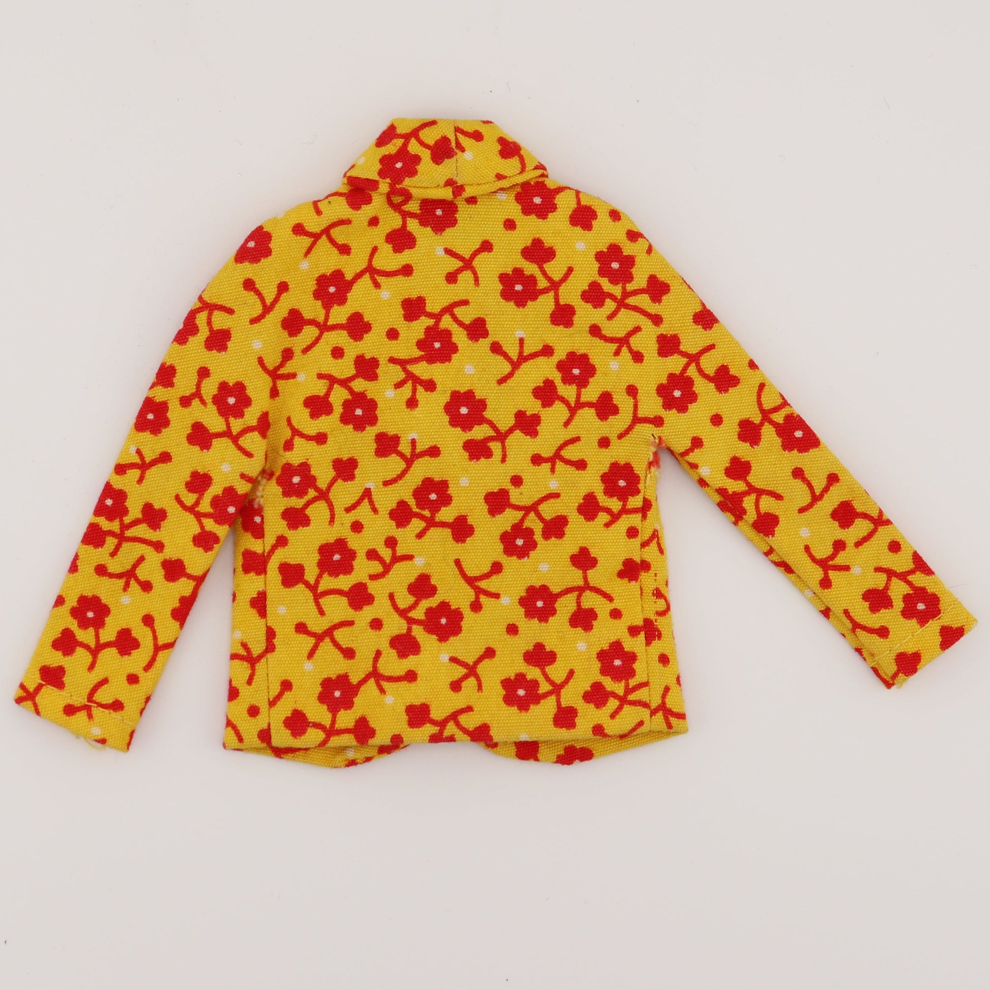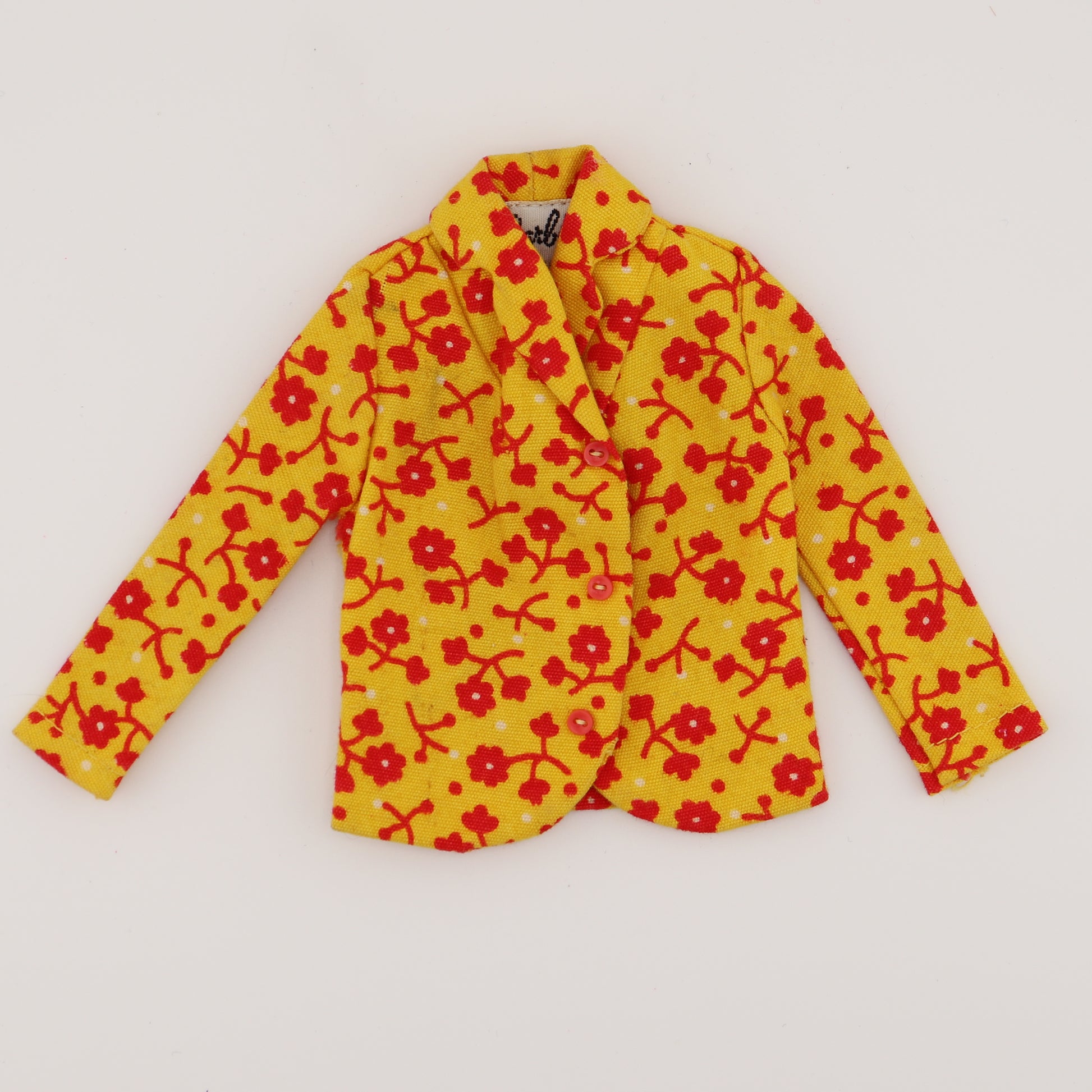 This is a true vintage from 1967. It's the Travel Together Barbie Jacket with a yellow background and red flowers all over. So beautiful and they absolutely don't make jackets of this quality now. Best fit for Twist N Turn Barbie body types.
