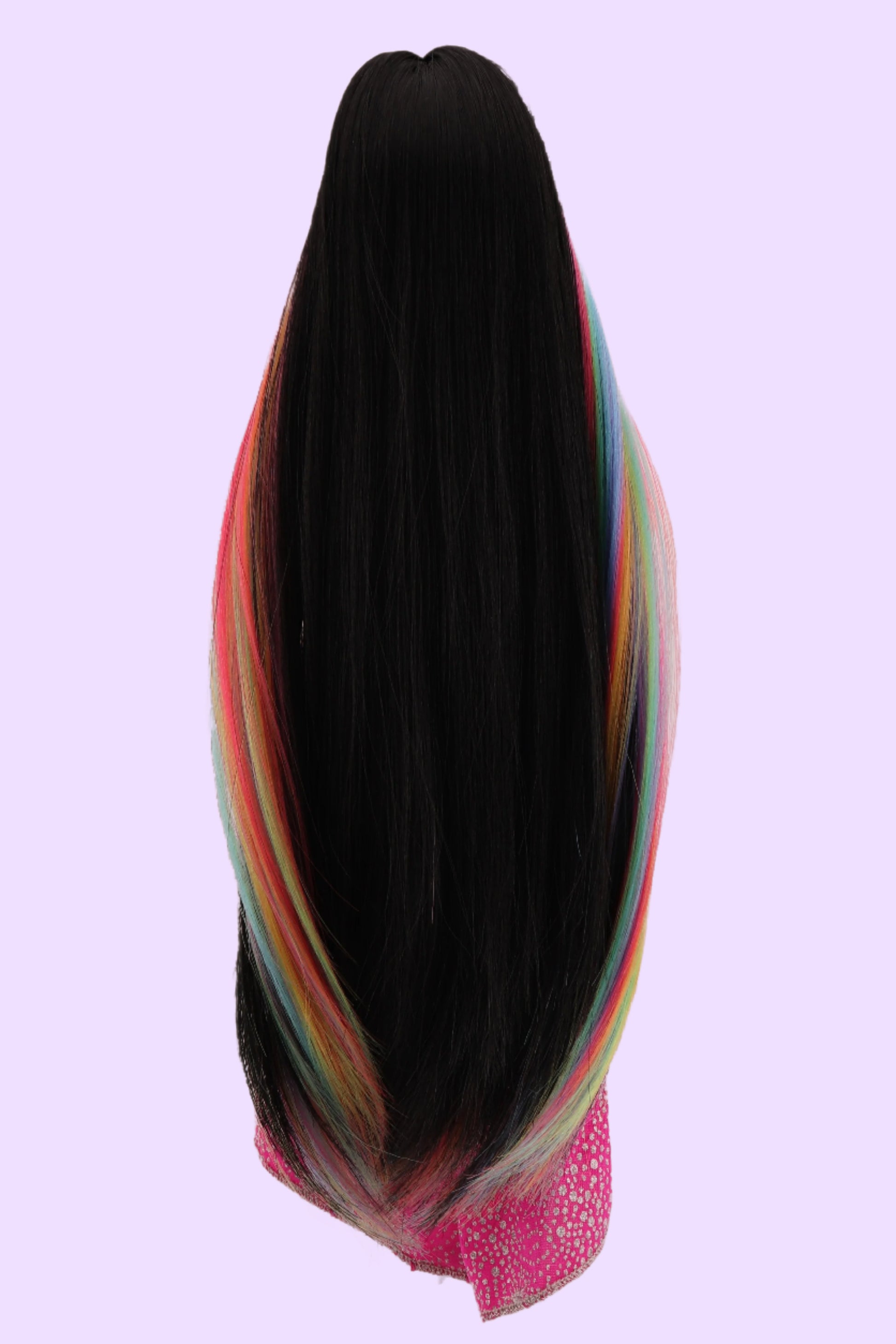This is a one of a kind custom collaboration that was designed by Eloisa and brought to life by Twiggy's Doll Hospital. Midnight black hair that is so full and soft with a rainbow all throughout promises this Barbie has never heard of a bad hair day. I had the best time bringing Eloisa's vision to life. This doll was too easy to get a good picture of.