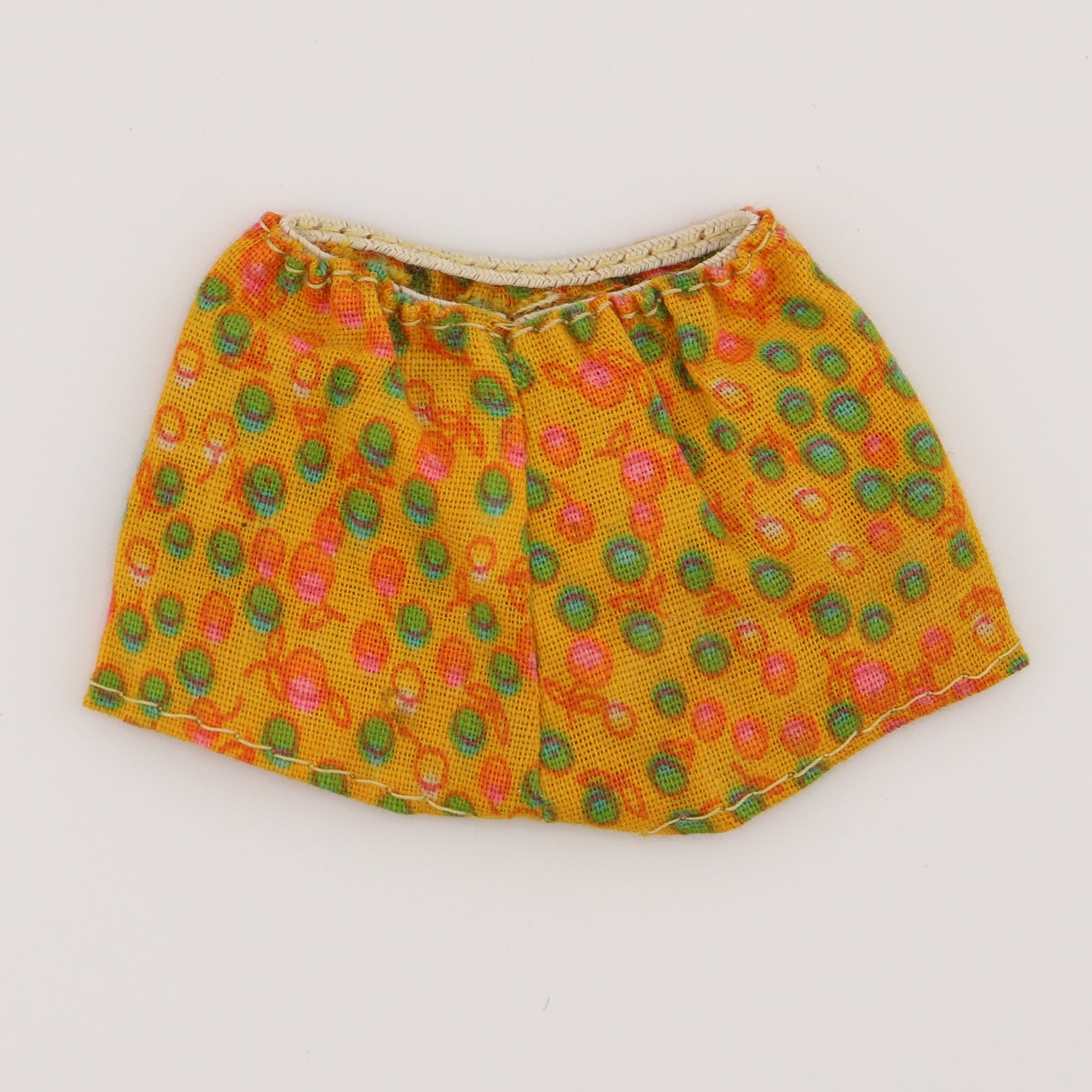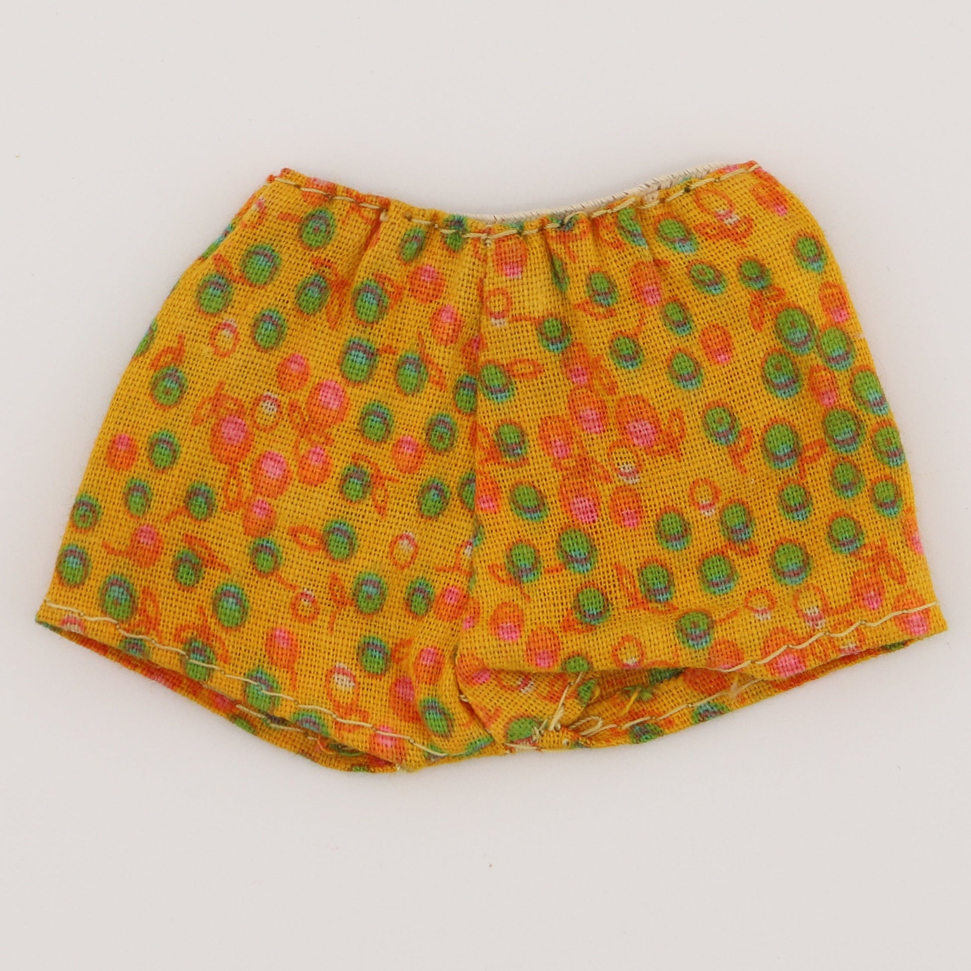 Adorable vintage shorts that are that classic 70s harvest yellow with green and orange leaves and flowers. Best fit for Twist N Turn Barbie bodies.