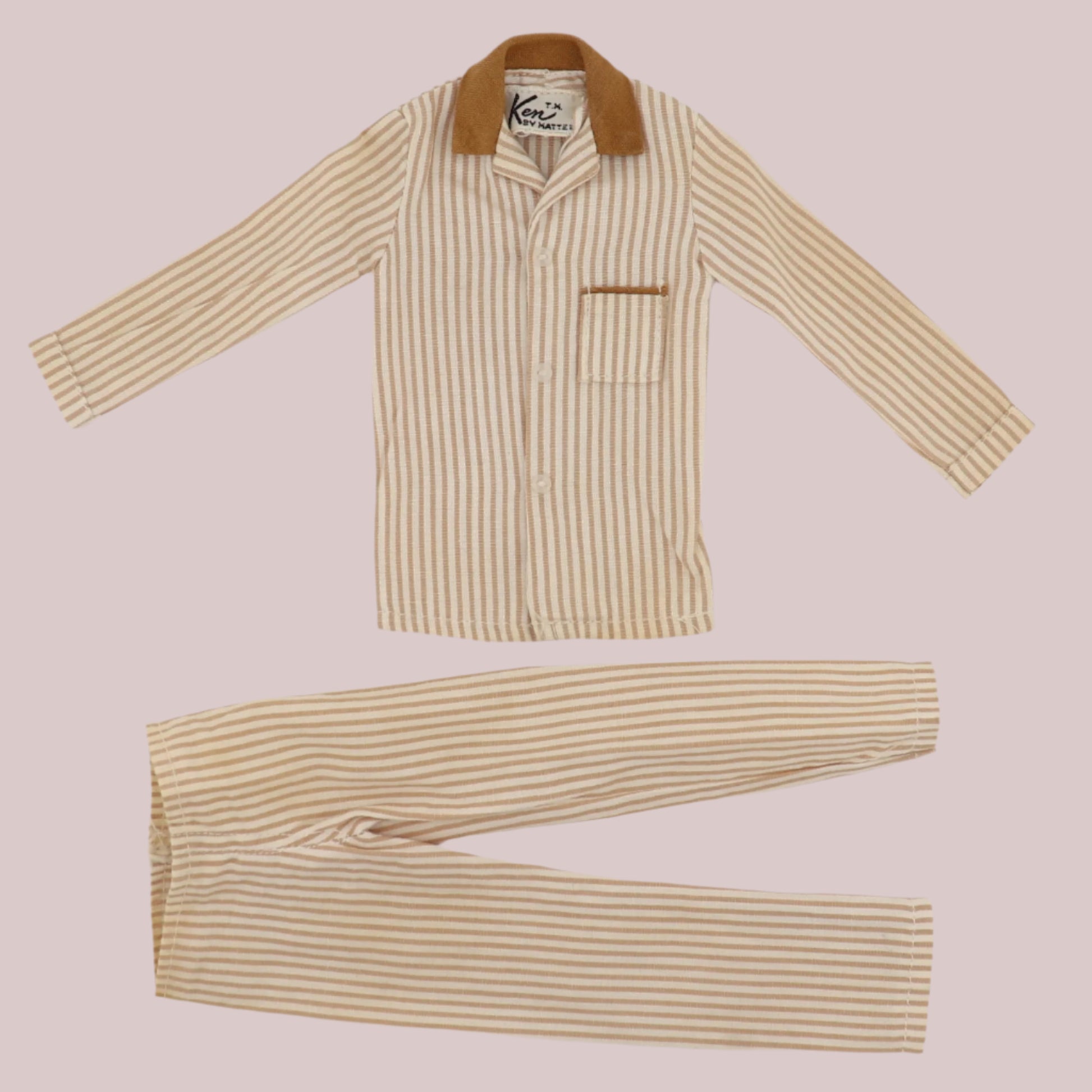 This adorable striped pj set is the #781 Ken Sleeper Set from 1961. A great vintage piece that speaks for itself. Small stain on the back.