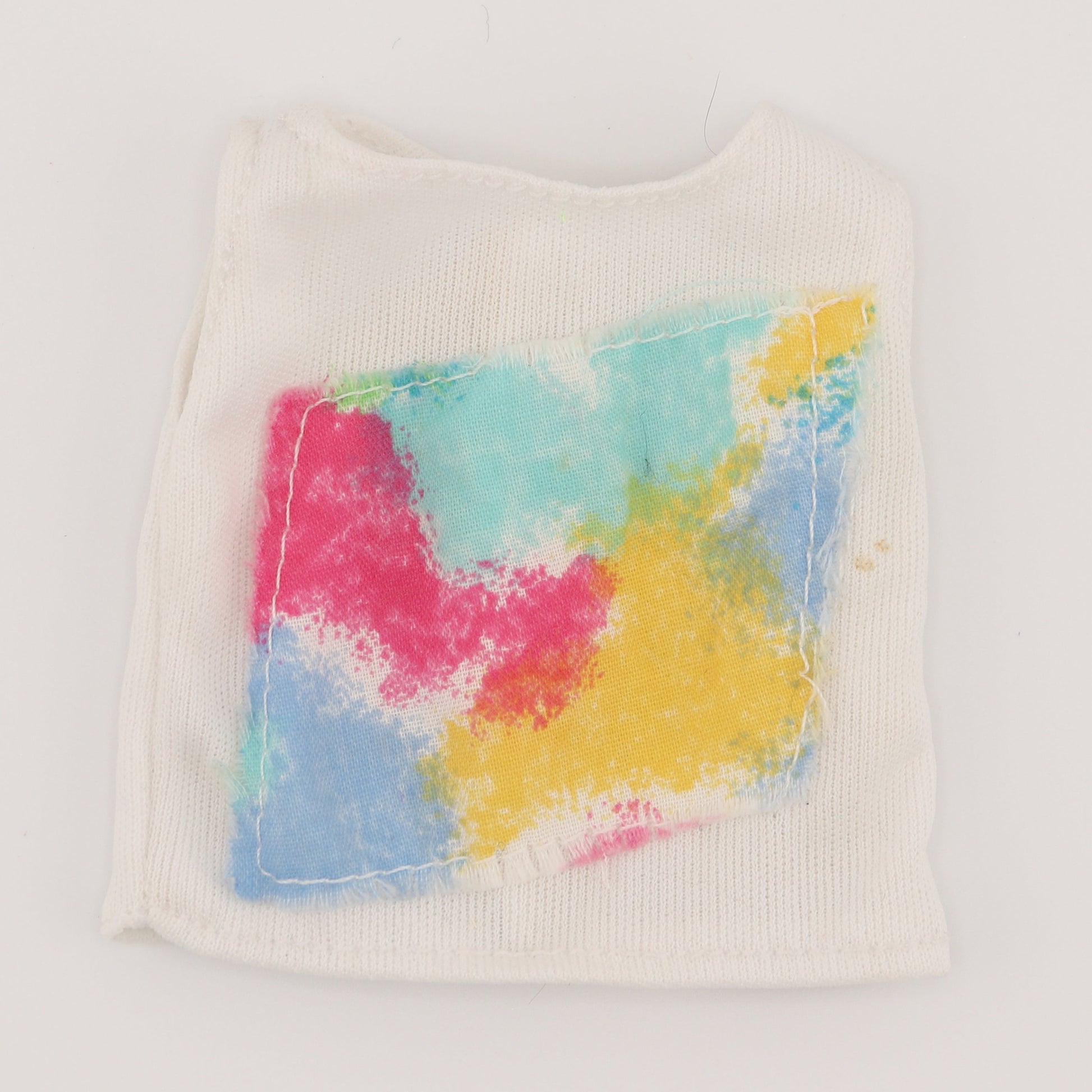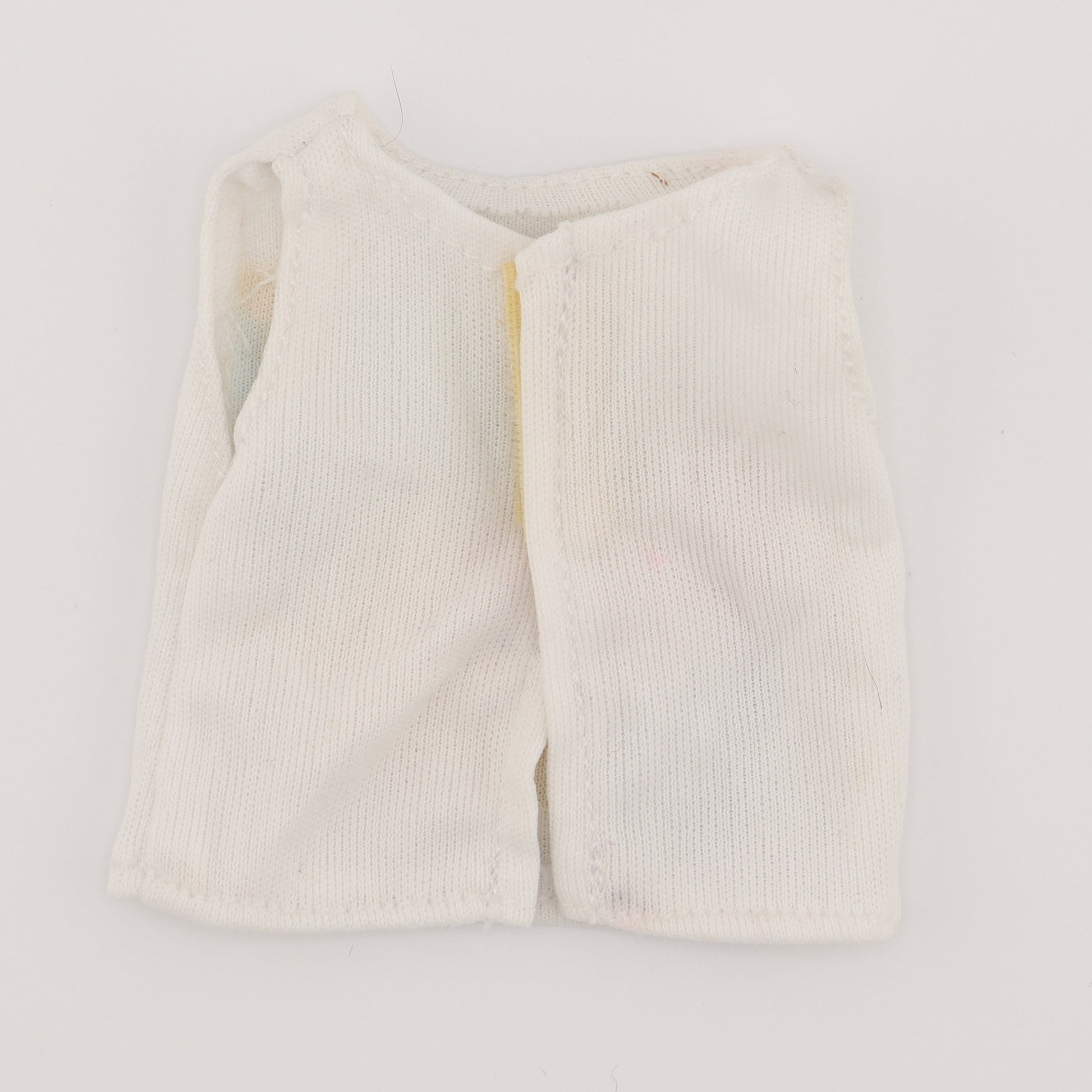 This is a white, square tank top for Ken or Barbie if she forgot a workout shirt. Best fit for Ken doll.
